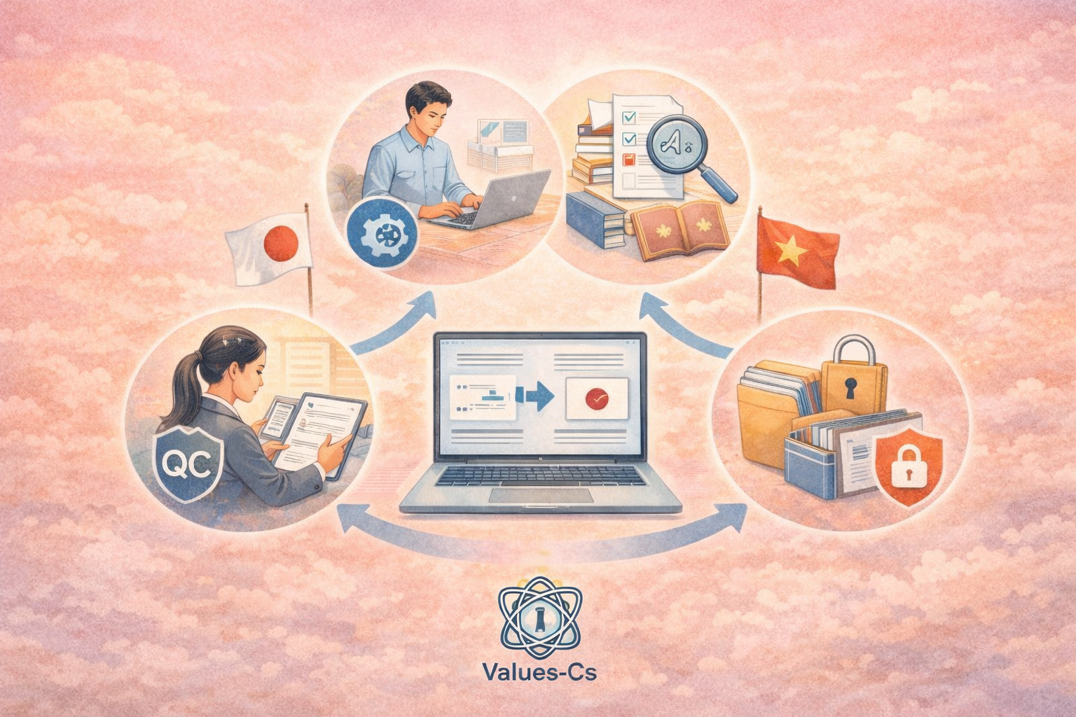 At Values-Cs, we have established a structured translation workflow, particularly for Japanese corporate clients, based on the following principles: